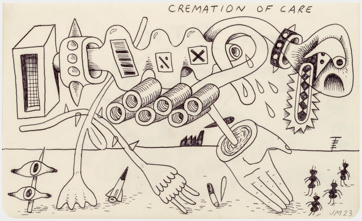 073 - "Cremation of Care" Drawing by Jim Mooijekind