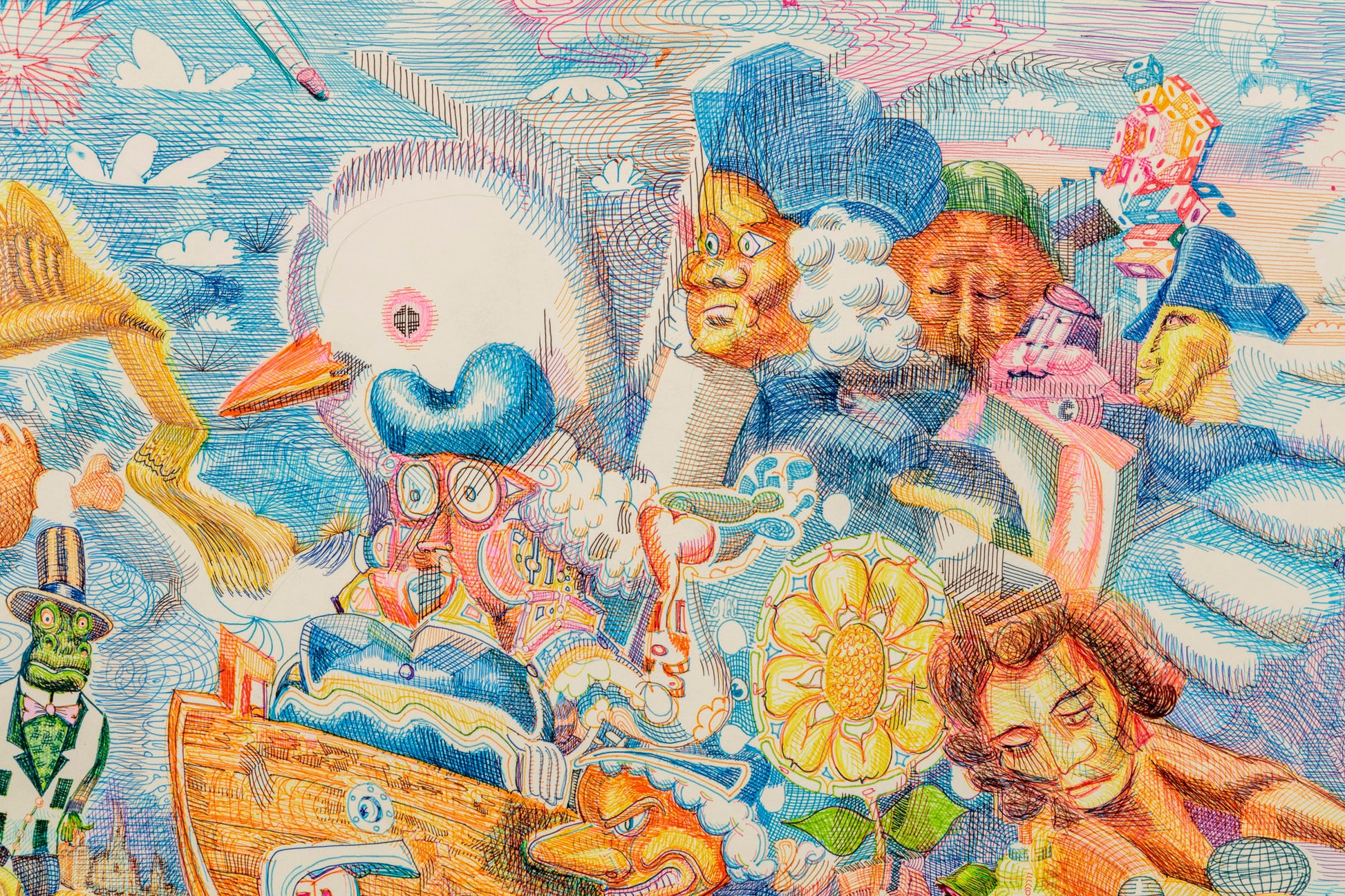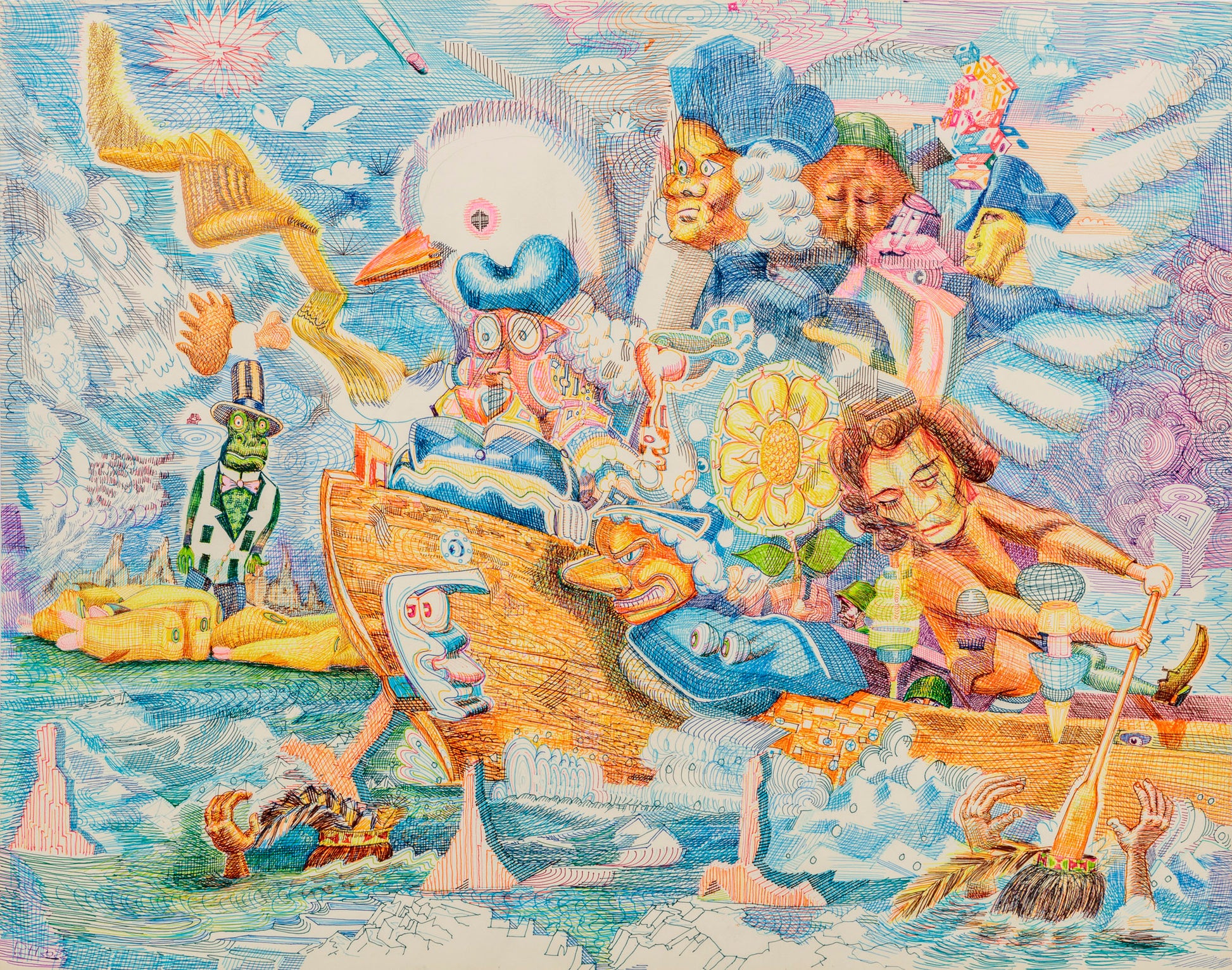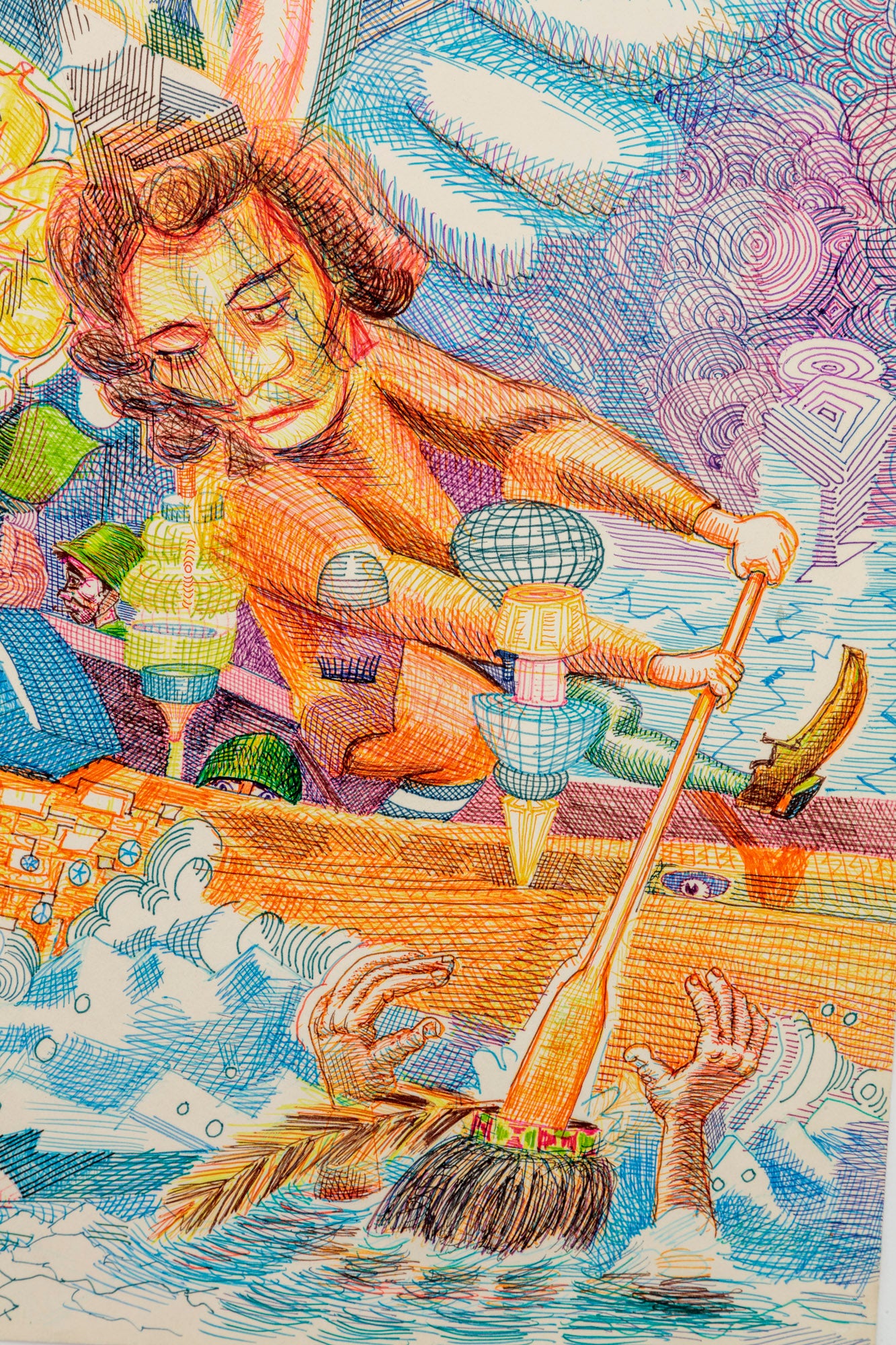 Ballpoint pen, Acrylic inks on Arches