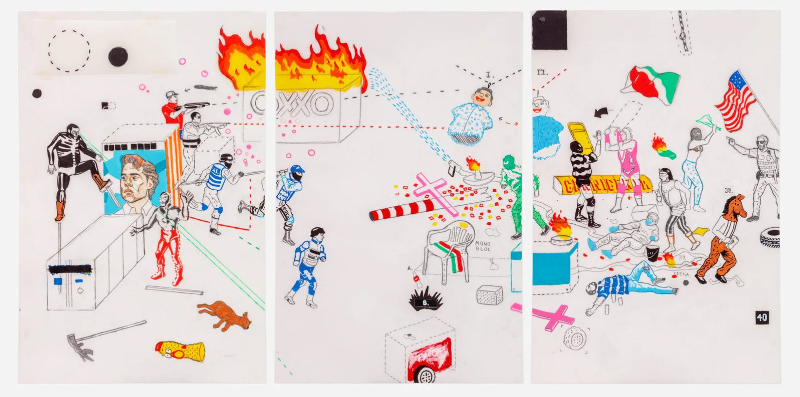 Prismacolor, Acrylic Paint, Uni-Posca Acrylic Markers, Graphite Pencil, on Mylar