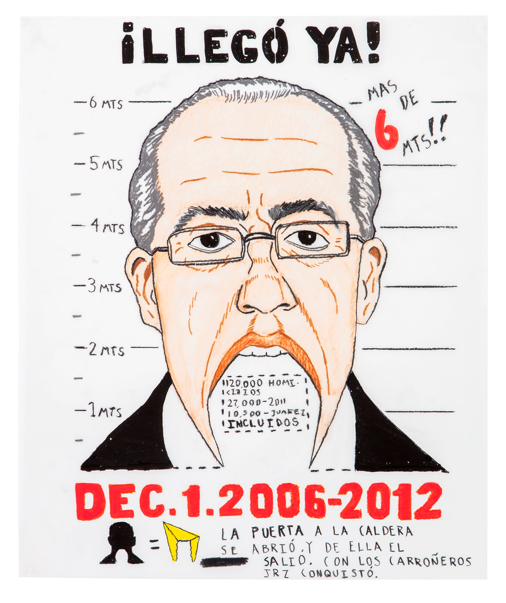 Graphite, Prismacolor, Acrylic Paint, Uni-Posca Acrylic Markers, on Mylar